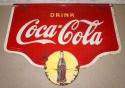 60"x45", good color, overall the main part of the sign is pretty good, the add-on bottle pieces are fairly rough, some heavy chips in the main sign too, might clean up with some work, rates 7 condition