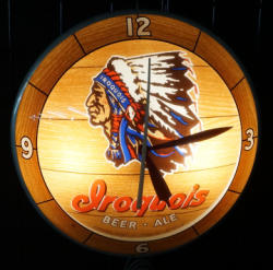 Works good, 15" across, has advertising on the face and the lens, super nice condition, great piece and very scarce piece of beer advertising