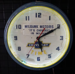 assuming it's from Milbank, SD, 20" across, works good, face has some general wear as does the case, but overall a very nice original; no shipping, too fragile