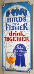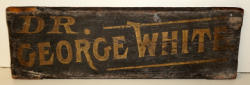 Modern made, wood back, looks like it's maybe part of a larger sign, has a couple of deep scratches, but still good color and shine, 23"x59"
