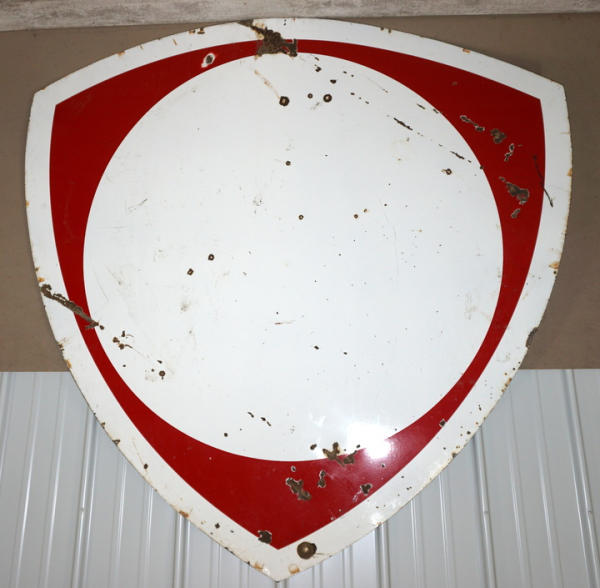 6'x6', one side never had the blue layer of porcelain put on, display side rates about 7 condition, reverse side also has chips, unique sign that was never finished from the factory, but obviously used