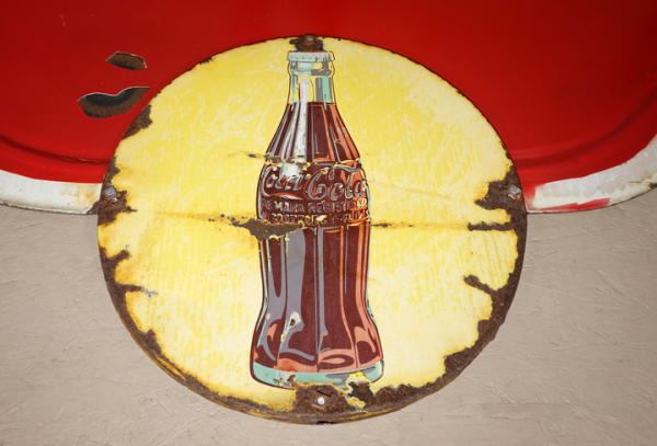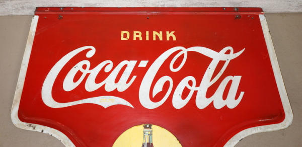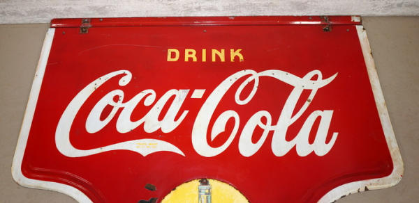 60"x45", good color, overall the main part of the sign is pretty good, the add-on bottle pieces are fairly rough, some heavy chips in the main sign too, might clean up with some work, rates 7 condition