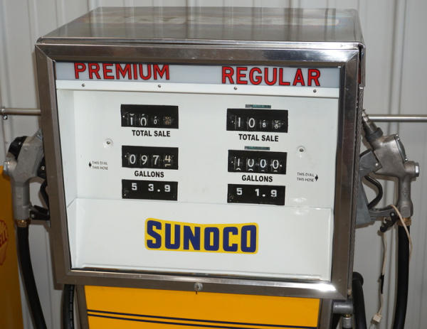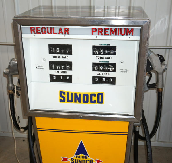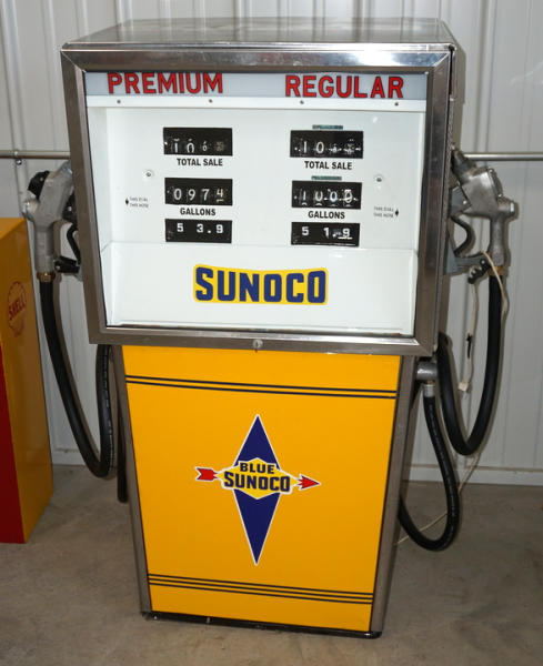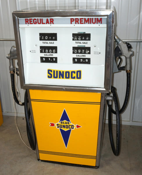 double pump, fresh restoration, paint & decals, very nicely done; the next era of collectible gas pumps! Great to display with your late 1970's & early 80's cars