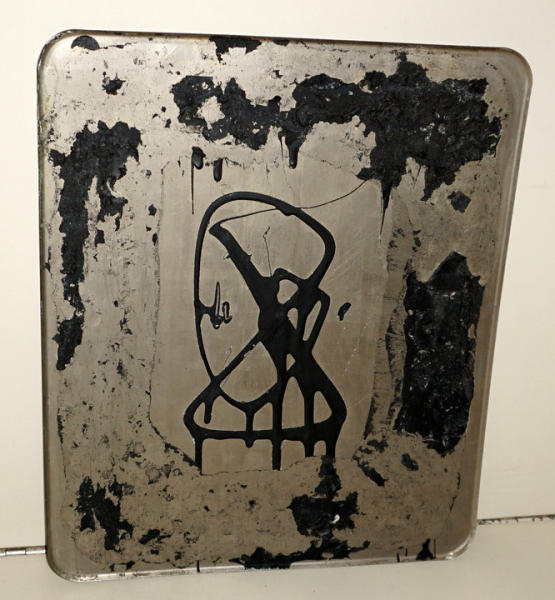 believe off a dispenser, has some old black stuff stuck to the back, 13"x11", rates 7.5 condition