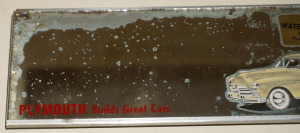10"x4", nice graphics, dealer name tag is slipping a little, some age spots and edge wear