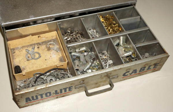 some cable inside, 11" wide, 8" deep, 10" tall, some general wear from use
