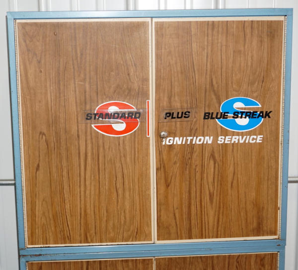 1970's era, nice original with some normal wear, comes into two pieces, 5' tall, 33" wide, 11" deep; includes the key