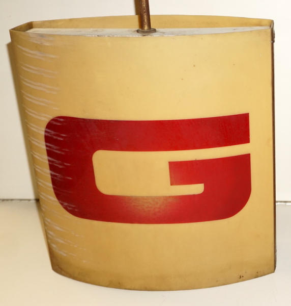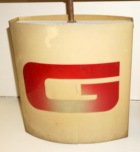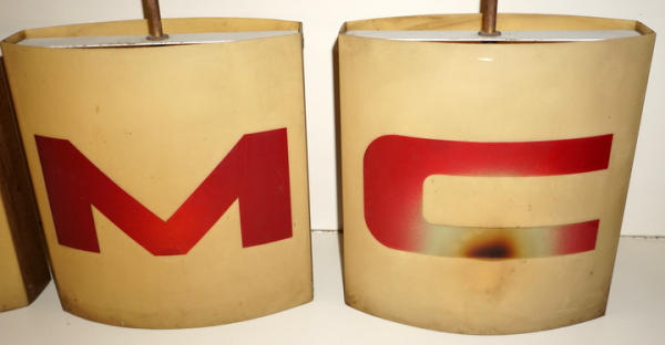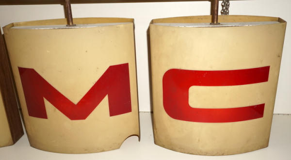 35" long, 16" tall, double sided, plastic letters are discolored, some have pieces missing, cracks or heat damage, looks good when lighted