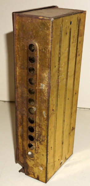 11" tall, 4" wide, nice graphics, fairly heavy wear