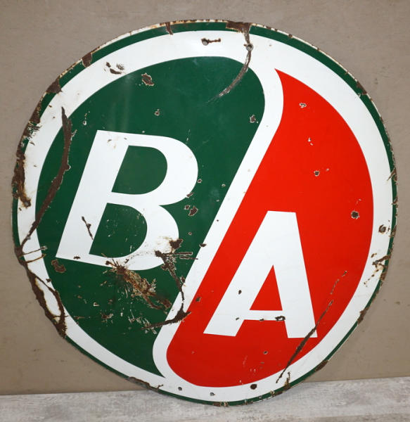 has a curve to it and very heavy chips and wear, barn hanger, has some larger holes in the white ring, maybe factory neon at one time?