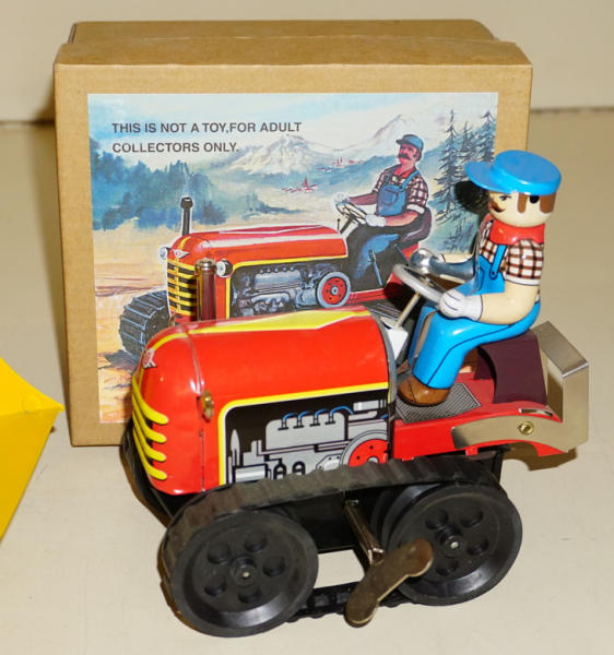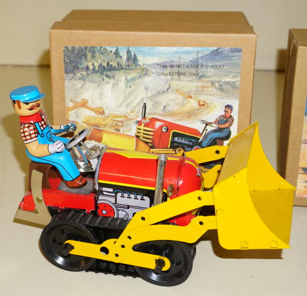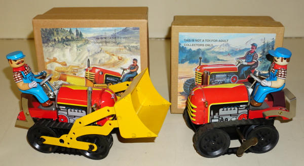 both NIB, one with loader, tractor is about 6" long, sells 2x the money