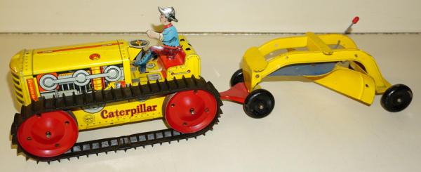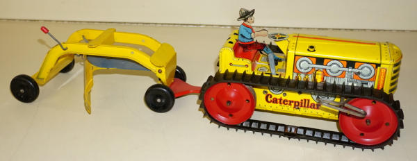 Crawler is 9" long and nice original with some light wear, windup works, tracks are good, blade is about 90% condition too, sells as a set