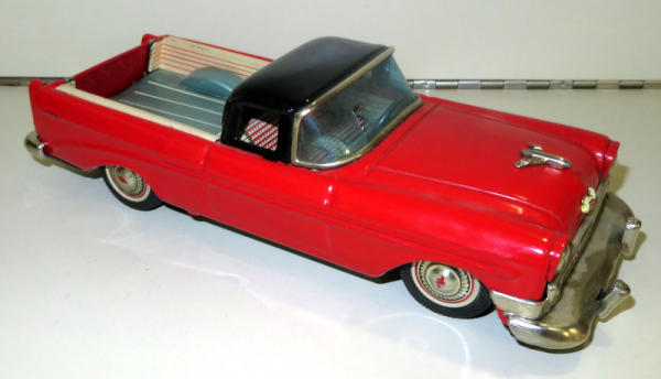 front wheels are stuck; paint is nice; has broken windshield; 10" long