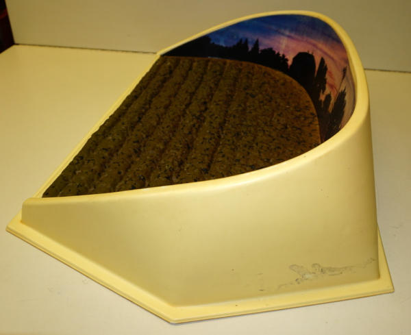 neat piece, this was part of a store display used during the intro of the first 2+2's, vacuform plastic, about 30"x16"x6" tall; some discoloration and wear, but no major cracks or damage, great display