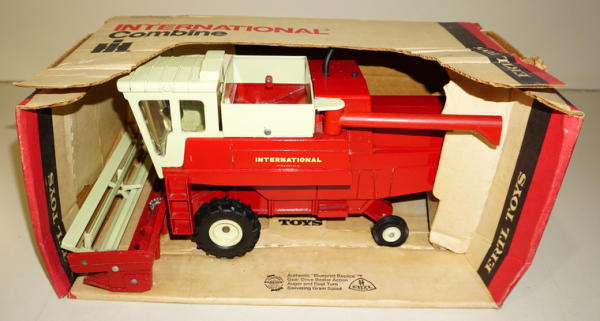 Toy is 97% condition, one stack is broken off and some paint loss in the grain tank, box has heavy wear and staining, box rates 7 condition