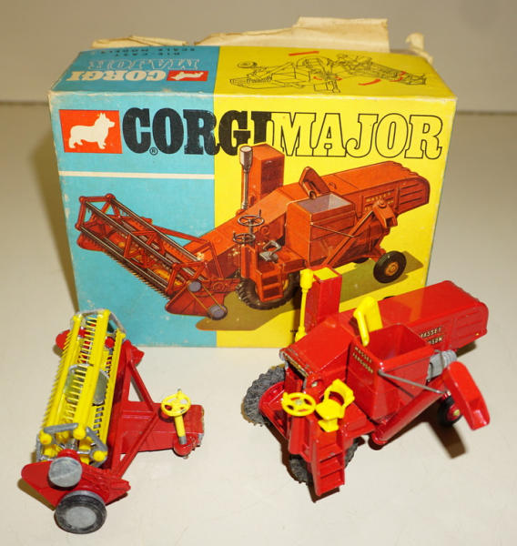 1/43rd scale I believe, header has broken off the main machine, looks like it was repaired once before, box has the liner, overall some general wear, box rates 7.5 condition