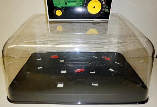 Never seen this display, 3 tractors have been displayed, but come with the original box, comes with a large plastic dome to be displayed in the store, sells as a set for one money