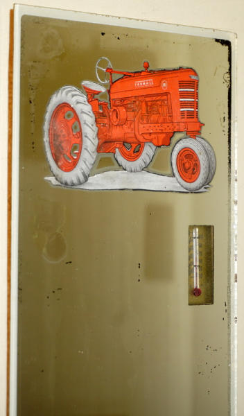 6"x11", good color, light edge wear, neat piece from the Farm Toy Capitol city!