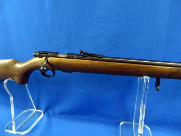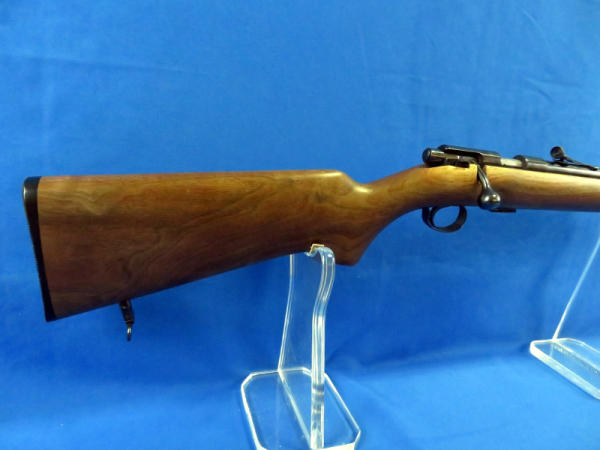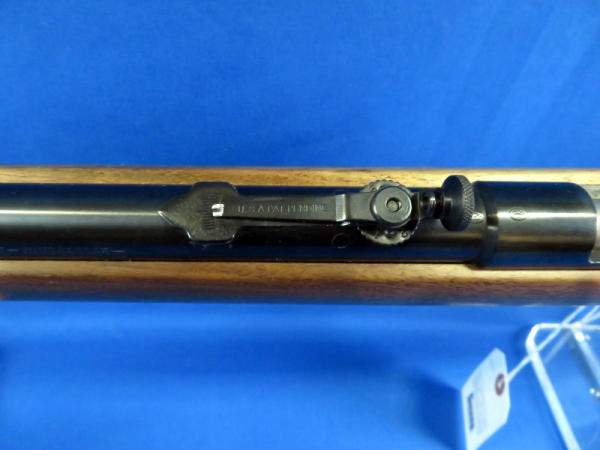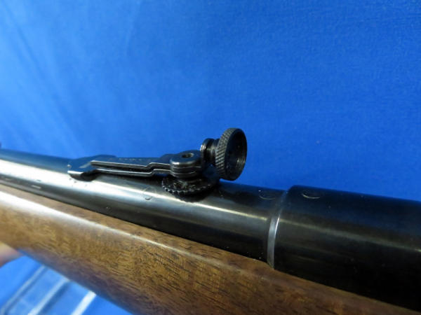 25" Bbl.; smooth action; wood is near perfect; bluing very nice; two removable magazines; has 97B rear peep sight and 80A hooded front sight; talks about the rarity of this model with these sights on page 581 of the Winchester Book by Madis; no SN#