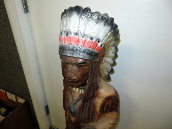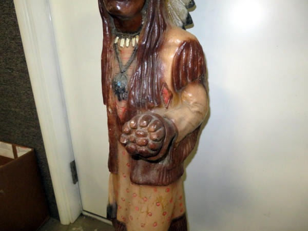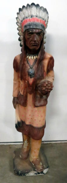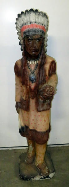 very nicely painted; stands 42" tall; great detail; very heavy; has some damage to base; no makers mark or cigar brand; looks like original paint; NO SHIPPING, local pickup only
