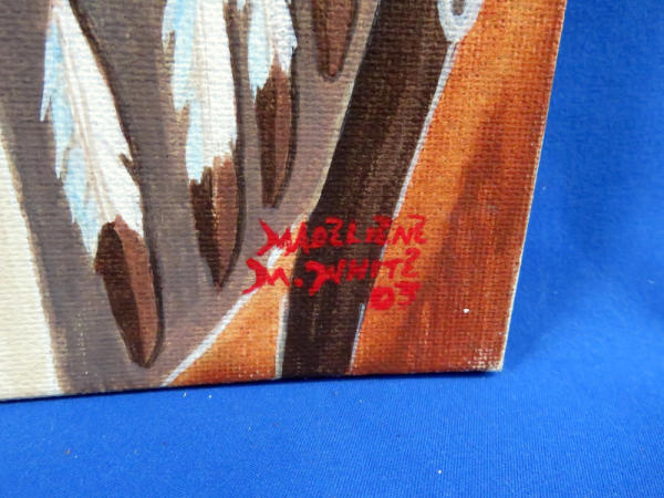 dated 2003; very detailed and bright colors; painted on hard canvas; no frame; 14"x18"