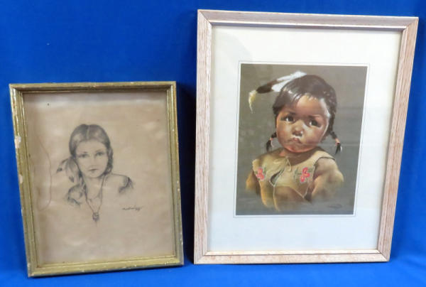 both signed; older pieces; large frame is 14.5"x12"; sell for one money