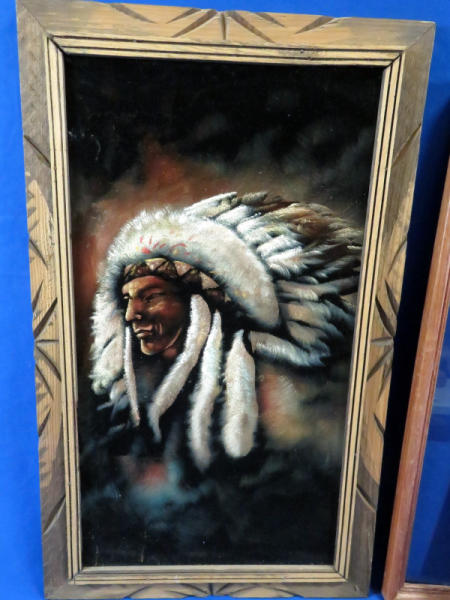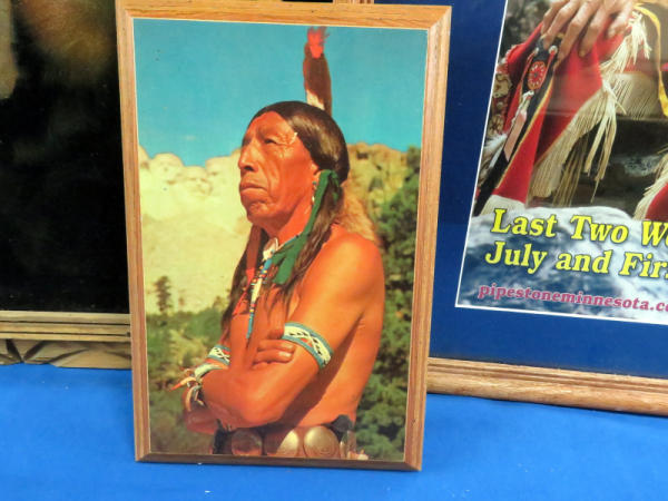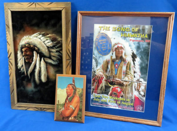 includes a painted felt piece marked Mexico; small wood hanging & Pipestone, MN Poster; poster is 21"x17"; sell for one money