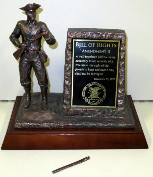 made or resin on wood base; nice detail; plaque is loose, just needs to be reglued; soldiers barrel is broke off but is included; 12"L x 11.5"T