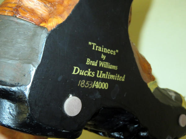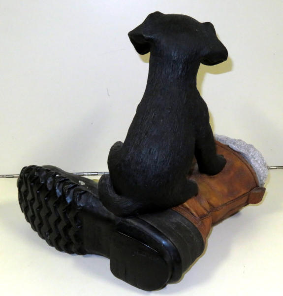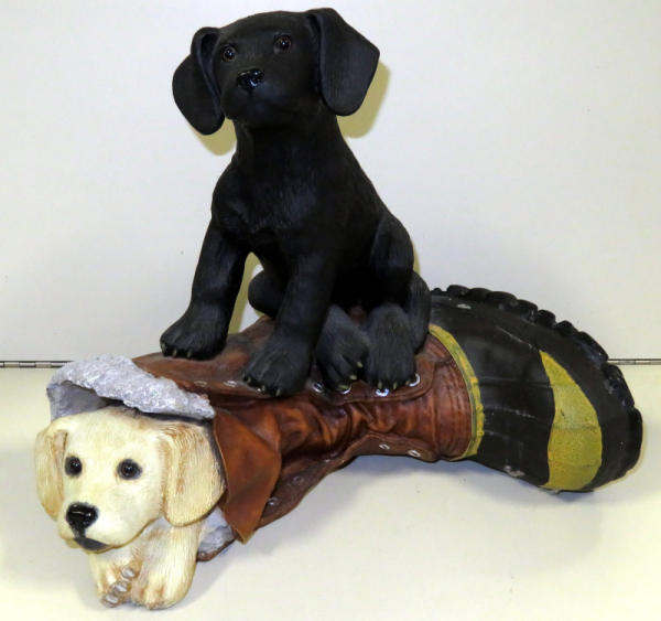 great looking piece of two pups playing in a hunting boot; 1853/4000; 14"Lx13"T