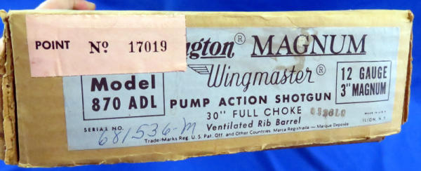 original box; great condition; if you have minty 870 Wingmaster with no box, you need this!