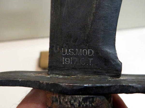 large; metal sheath w/canvas case; blade has wear; wooden handle; blade is 10" long!; neat piece