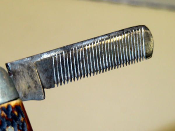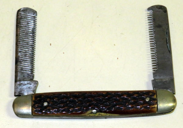 never seen one before! Don't see a maker; very unique piece; 3.5" long when folded