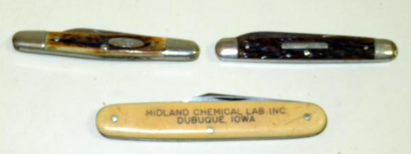 all have some use; biggest one has "Midland Chemical Lab Inc., Dubuque, Iowa" and is 3.75" when folded; sell 3x the money