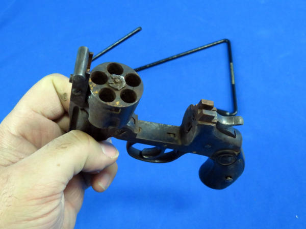 cylinder does not lock; not safe to fire; broken grips; 3" solid-rib barrel; finish is worn; action does work; no SN#; no FFL transfer needed, buying as a parts gun