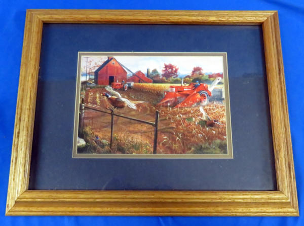 nicely framed & matted; has IH 450 w/picker & M with four pheasant leaving the field; 19"x15"