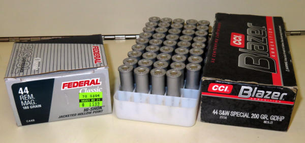 Federal full box, 180gr. JHP; Blazer partial box 200gr. GDHP; 64 rounds total; sell for one money