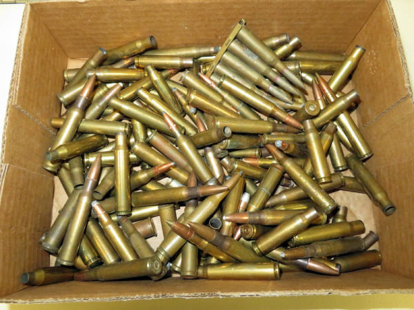 bout 60% ammo, 40% brass; all kinds of calibers, looks like mostly .30-06; sell for one money