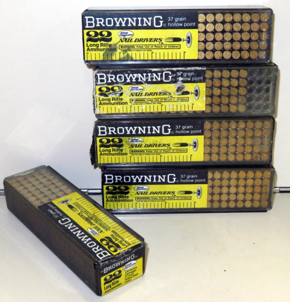 older browning plastic cases; 4 full and one has 85-rounds; 485 rounds total; sell 5x the money
