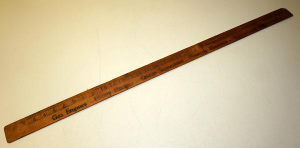 has JD on the back side, advertises Gas Engines on the front, quite a bit of wear and a chipped corner