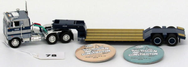 1/64 Scale; DCP Peterbilt Cabover w/lowboy; Button/Badges; includes original box;