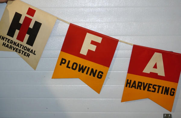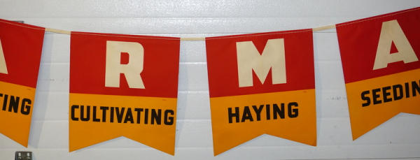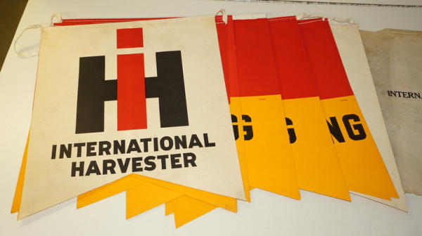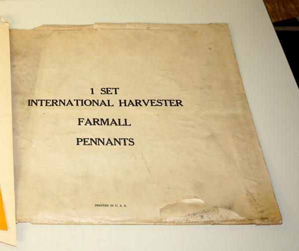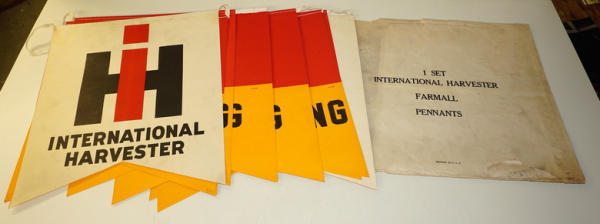 each pennant is about 15"x17", double sided, some discoloration from age, might have been used, but not for very long, neat piece we have never offered before