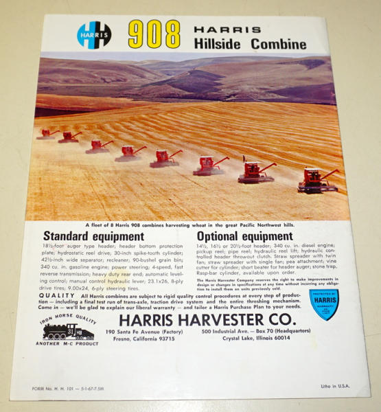 14 pages, all color, hard piece to find on Harris combines, light wear