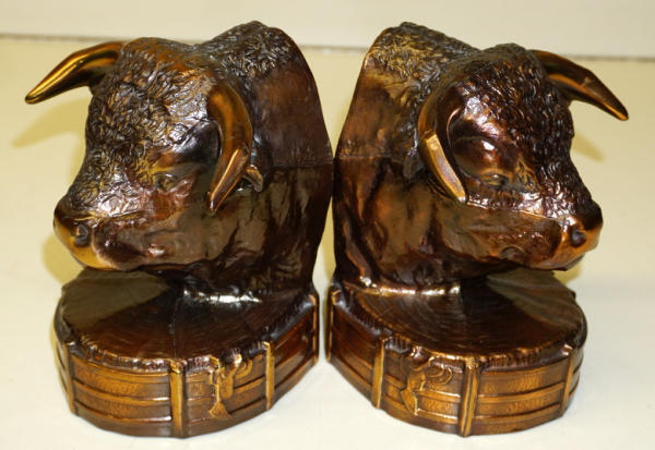 6" tall, copper finish, heavy pot metal, clean and nice, sells as a set