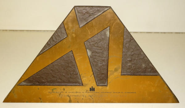 15"x8", heavy brass, about 1/2" thick, some tarnishing and some scuffs, but overall nice