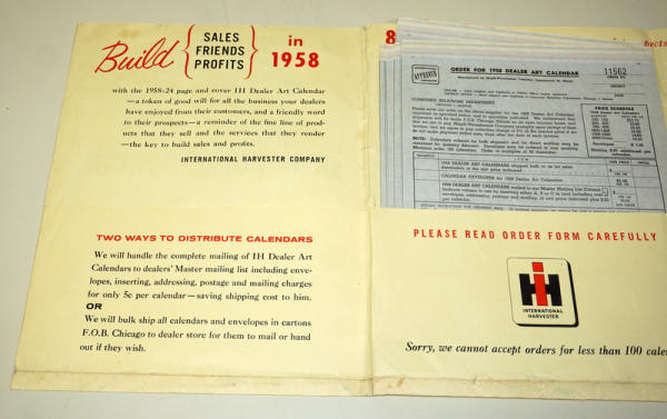 3-page folder, has order forms inside, but the Sample calendar is not included, has some wear and writing on the cover