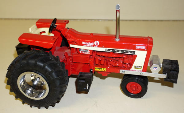 full custom, 1980's Ertl body, lots of weights, custom wheels, & chrome stack, looks good