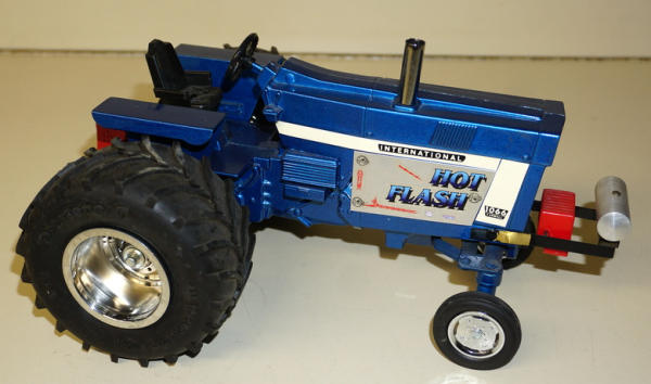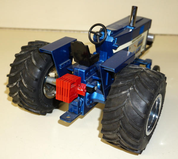 built from old 66-series casting, wide Firestone wheels, blue metallic pain, older puller but looks good