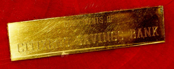 about 22"x22", presented from Citizens Savings Bank to Avoca Implement