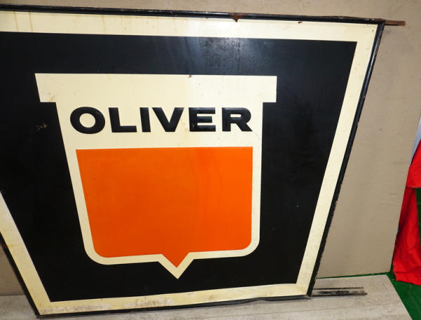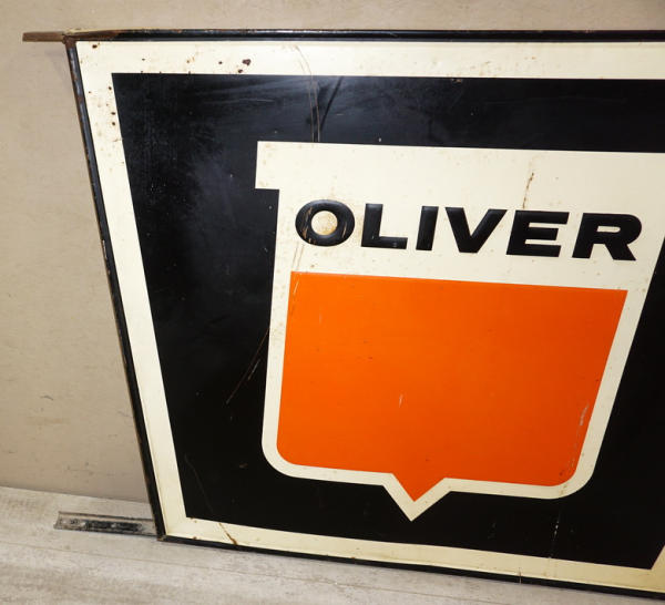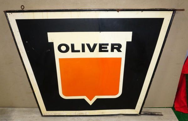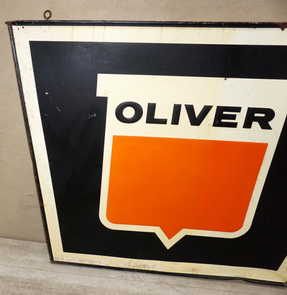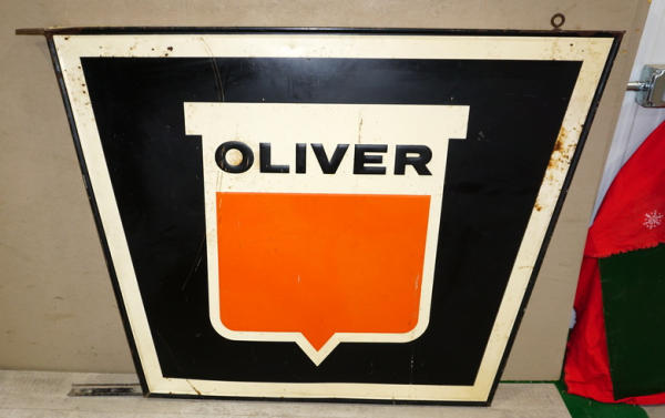 2 signs mounted together, one side rates about 8 condition, reverse side about 7 with some dents and discoloration, measures 58"x45" plus the bracket, very hard sign to find