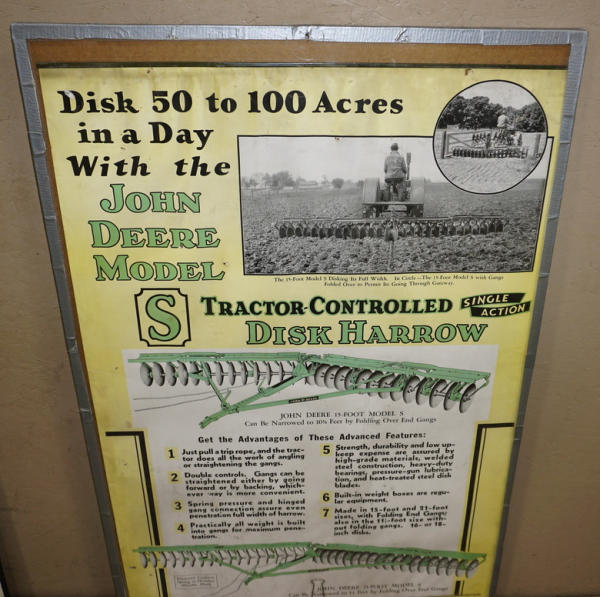 has the top metal band, faded and has water spots, 24"x36" overall, in a homemade plexiglass & wood frame